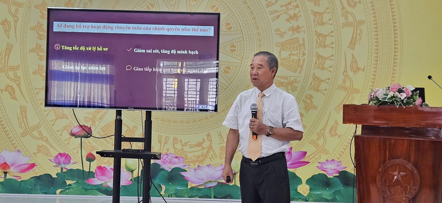 Tại hội nghị, các đại biểu được nghe Tiến sĩ Nguyễn Xuân Niệm, Chủ tịch Hội Khởi nghiệp đổi mới sáng tạo; nguyên Phó Giám đốc Sở Khoa học và Công nghệ tỉnh Kiên Giang, phân tích xu hướng phát triển của trí tuệ nhân tạo và vai trò của AI trong quản trị nhà nước, phát triển kinh tế - xã hội và xây dựng hệ sinh thái khởi nghiệp đổi mới sáng tạo từ cơ sở. Tiến sĩ Nguyễn Xuân Niệm cho rằng, AI không chỉ là công cụ hỗ trợ nâng cao hiệu quả công việc hành chính, mà còn mở ra nhiều cơ hội cho phát triển sản phẩm OCOP, quảng bá nông sản, du lịch và thúc đẩy phong trào khởi nghiệp tại địa phương.