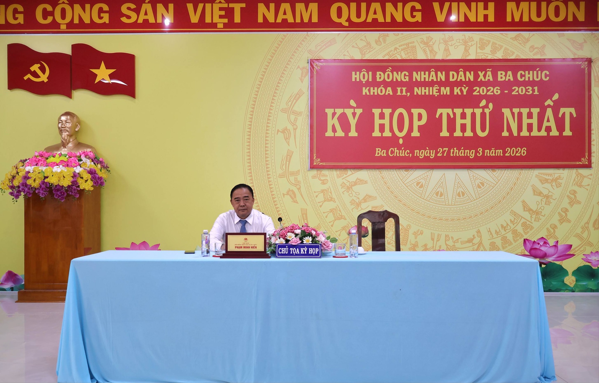 Ngày 27/3/2026, HĐND xã Ba Chúc, khóa II, nhiệm kỳ 2026 - 2031 tổ chức kỳ họp thứ nhất nhằm kiện toàn các chức danh chủ chốt và thông qua nhiều nội dung quan trọng; ông Phạm Minh Hiền, Bí thư Đảng ủy, Chủ tịch HĐND xã khóa I, nhiệm kỳ 2021 - 2026 chủ tọa kỳ họp.
