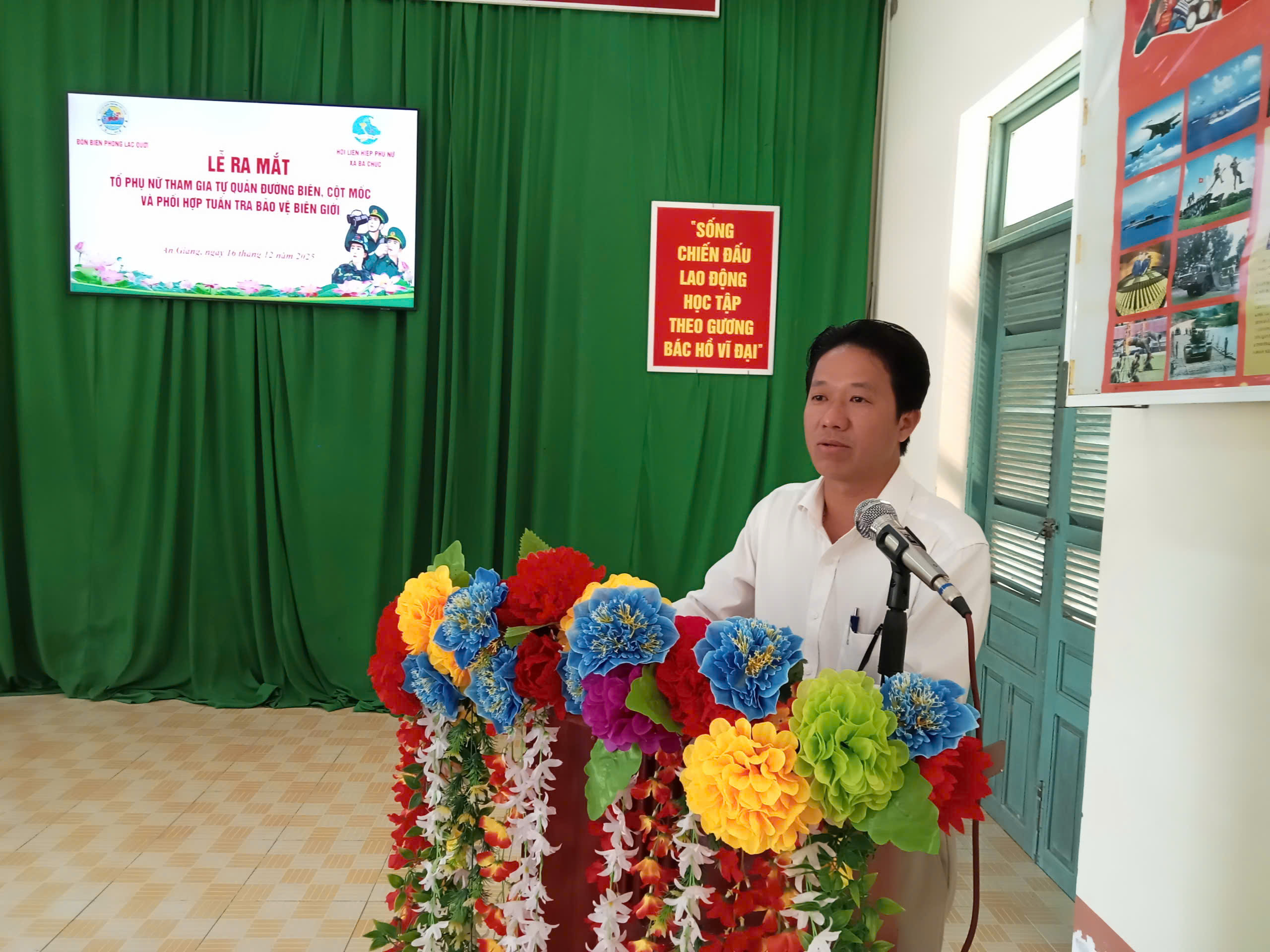 Phát biểu tại buổi ra mắt, đồng chí Võ Thanh Tuấn, Phó Bí thư Đảng ủy, Chủ tịch UBND xã Ba Chúc khẳng định: Việc xây dựng mô hình “Tổ phụ nữ tham gia tự quản đường biên, cột mốc” là chủ trương thiết thực, góp phần phát huy vai trò, trách nhiệm của phụ nữ trong tham gia bảo vệ chủ quyền lãnh thổ, an ninh biên giới quốc gia. Đồng thời, đồng chí Võ Thanh Tuấn đề nghị các thành viên trong tổ nêu cao tinh thần trách nhiệm, tích cực phối hợp với cán bộ, chiến sĩ BĐBP và chính quyền địa phương, góp phần xây dựng khu vực biên giới hòa bình, hữu nghị, ổn định, hợp tác, cùng phát triển.